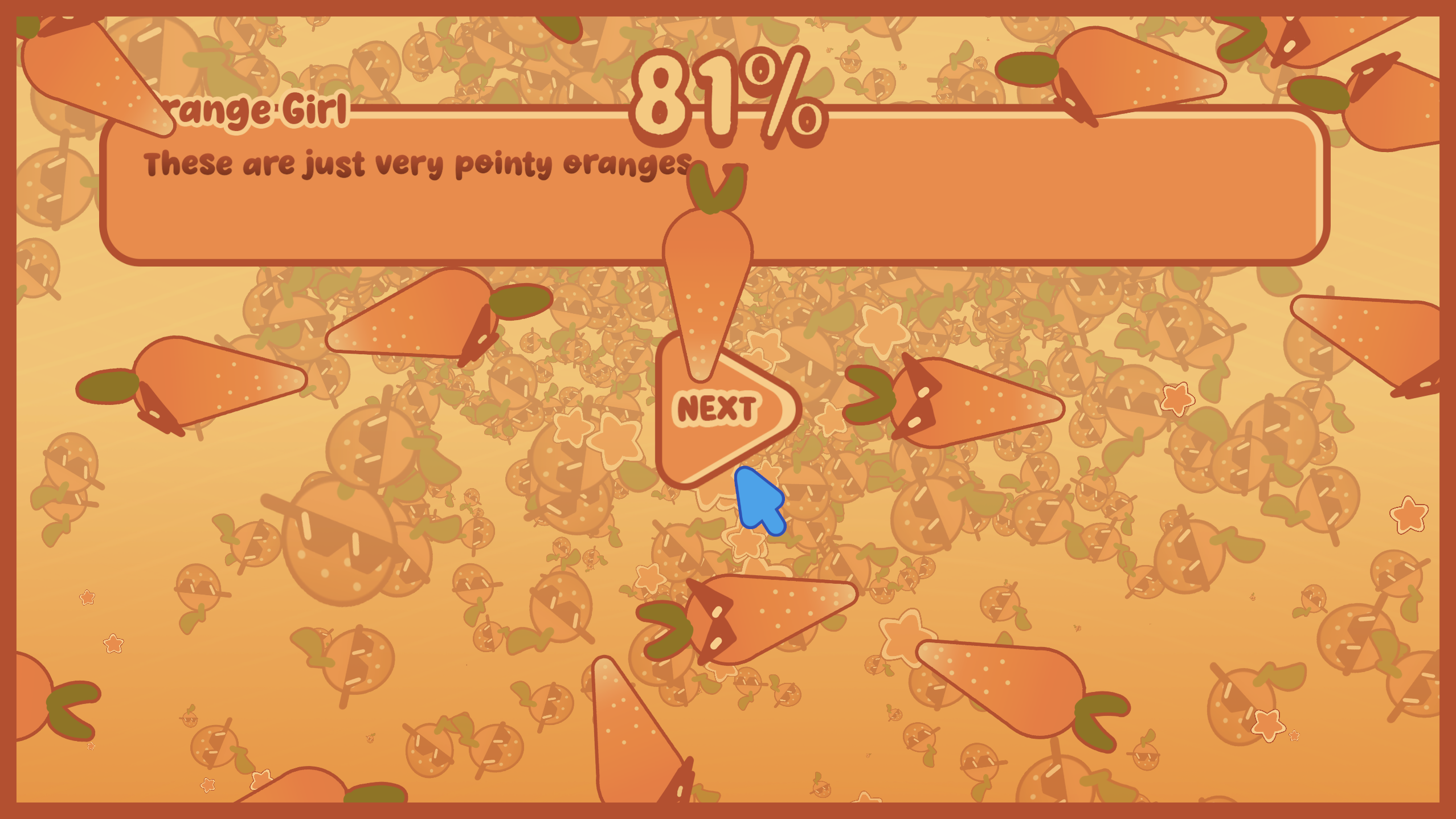 Thanks for playing and reading everything, I'm glad you enjoyed the oranges!