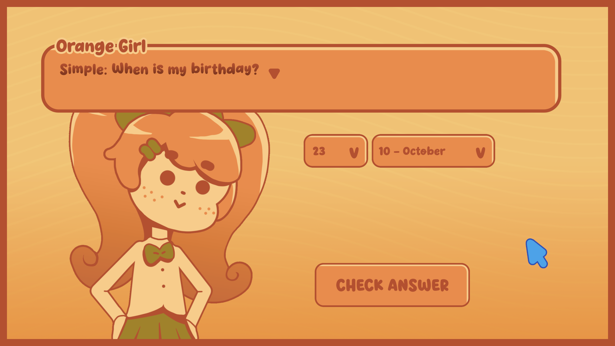 Hi, I'm Orange Girl, it's nice to meet you!